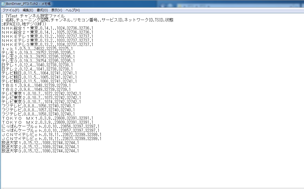 テレ玉のチャンネルが受信をしないのでファイルの確認と書き換えをすると