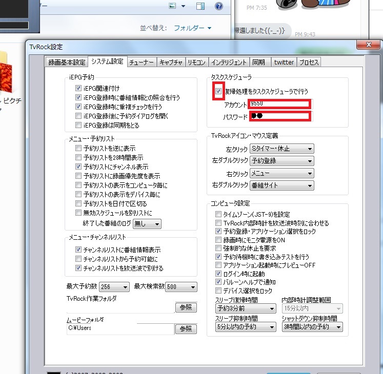 いろいろ調べて下の設定で今のところ再起動無しタイマー録画okです