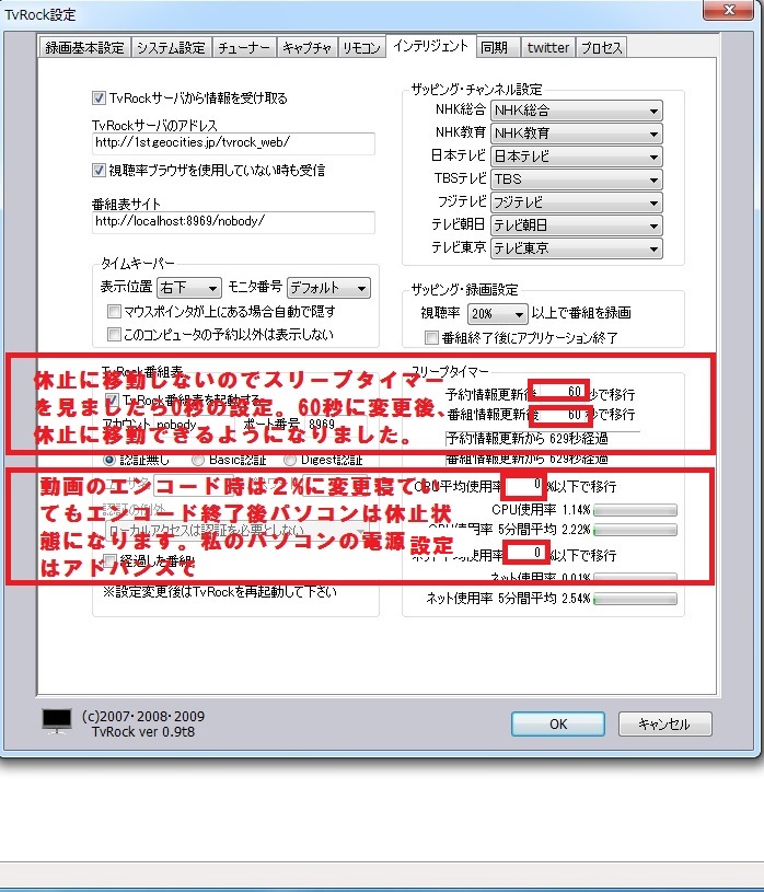 休止状態になりませんでしたのでTvRock設定 インテリジェントの設定です