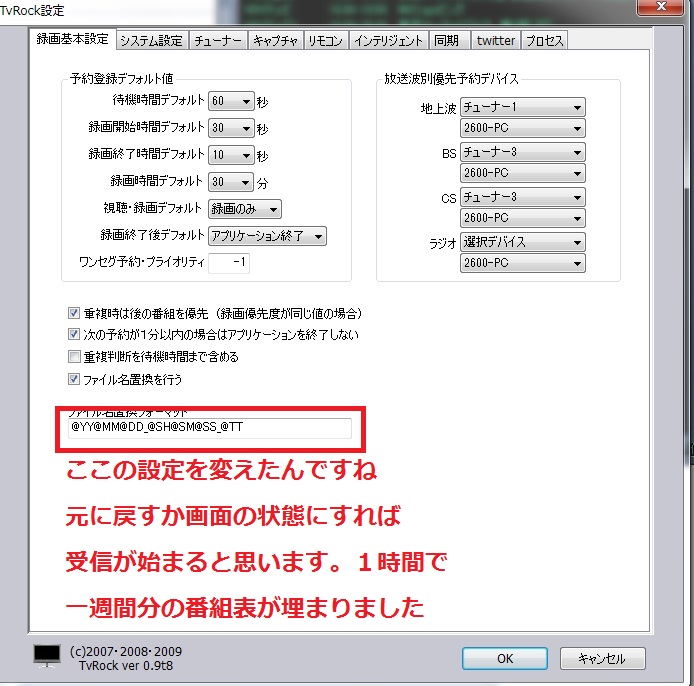 番組情報が入らなくなりました。なんでかなーーーって考えて2日前にTVRookの設定を変えたことを思い出しました