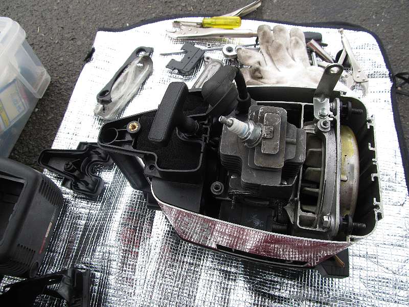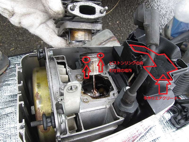 下の写真の状態になるのに30分位で色々いじくって(ピストン清掃とかリング交換とか)