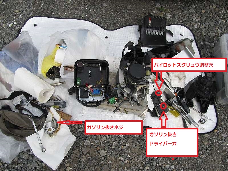 キャブレターは簡単に外れました。ネットで探してください。パイロットスクリューを調整する時にドライバーを